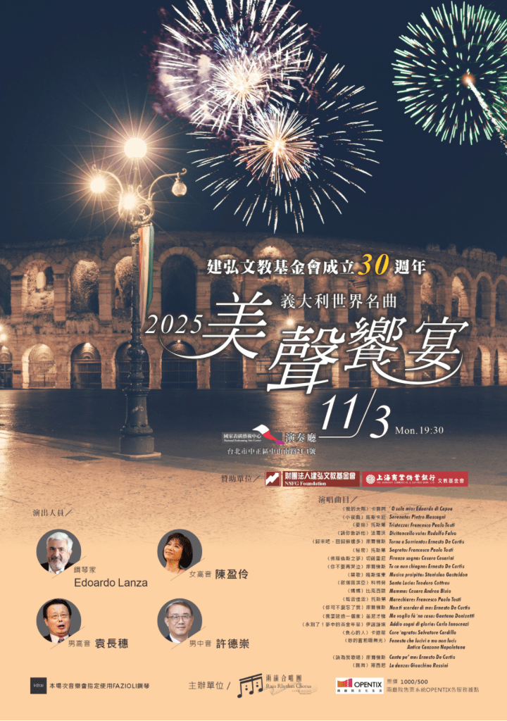 【建弘文教基金會成立30周年-2025義大利世界名曲美聲饗宴】